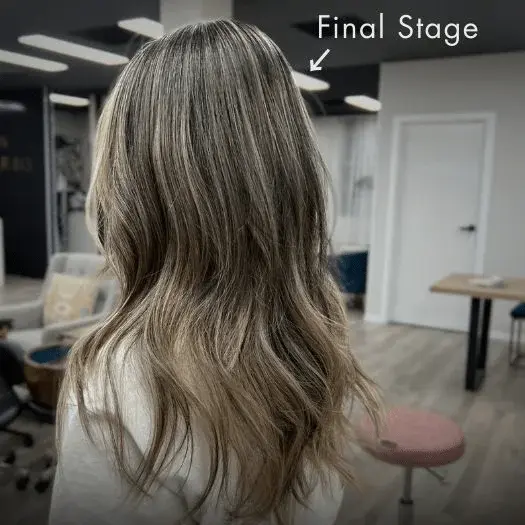 Refresh your grey blending with a soft tone blend from roots to ends. Trim and K18 treatment